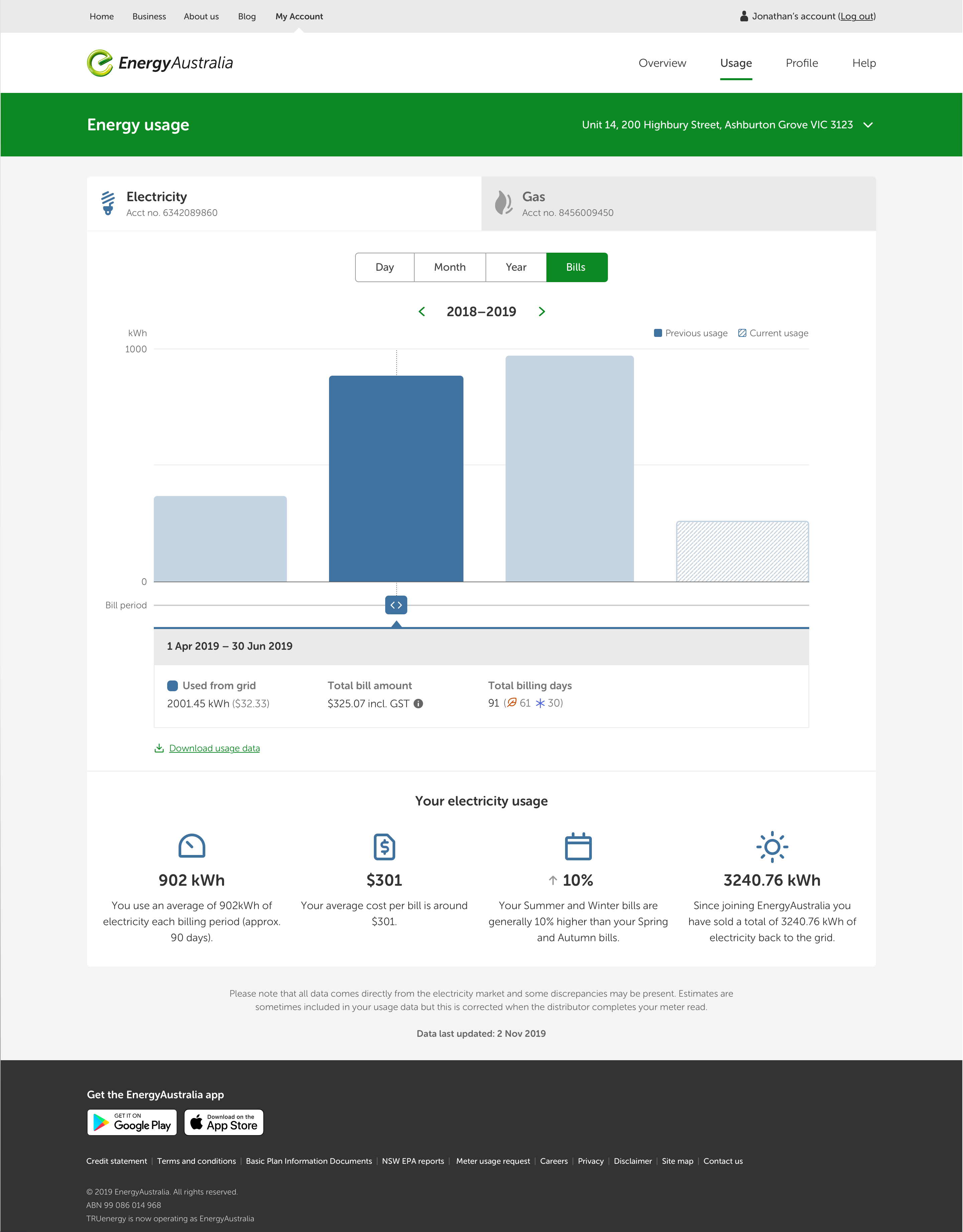 My Account usage Usage by bill period / medium hi-fi Usage by bill period / Bill period / final UI Monthly usage / medium hi-fi Monthly usage / final UI