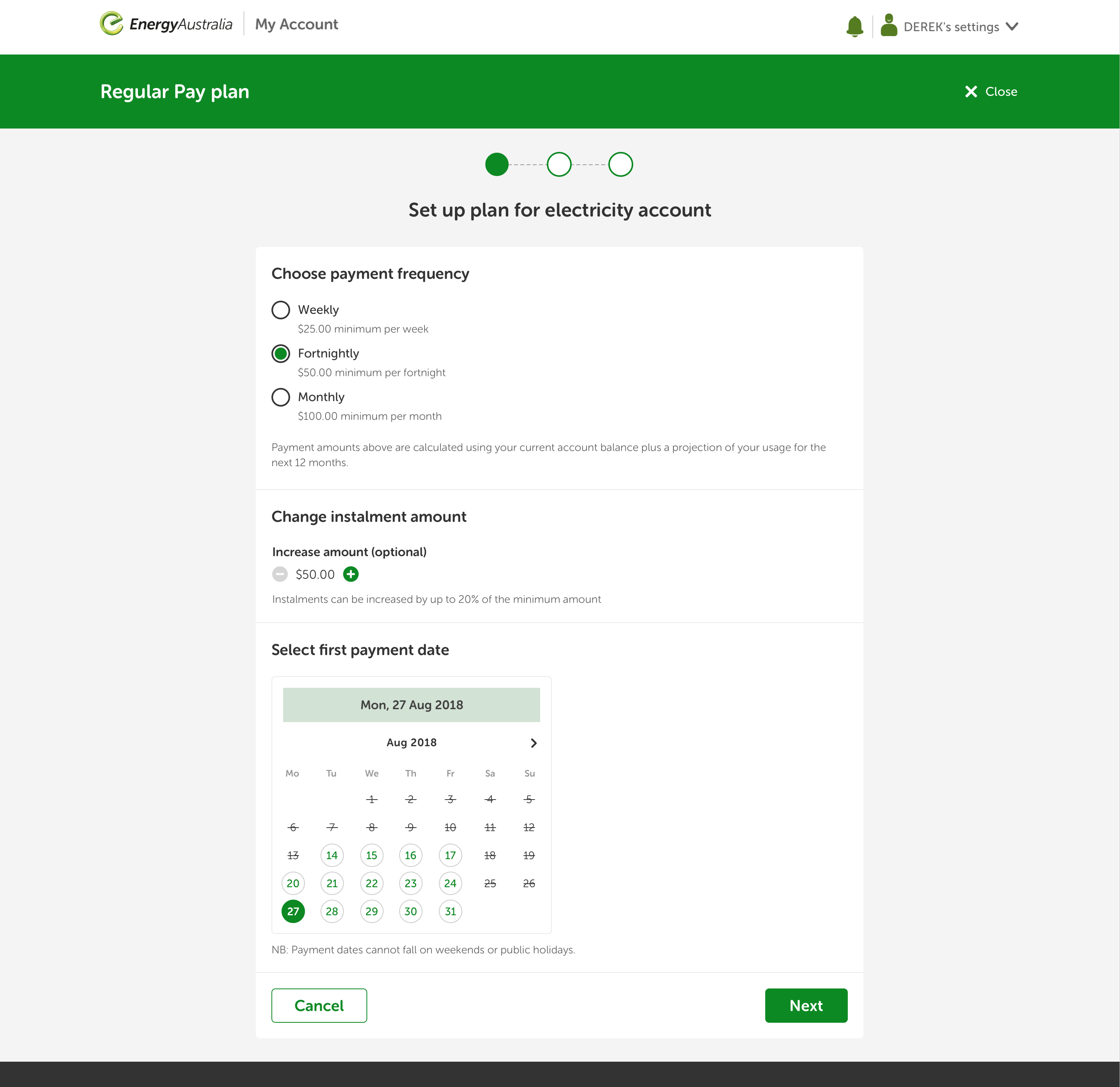 Customers were frustrated when the Direct Debit payment was taken out of their account when they didn’t have the funds available, they wanted to be able to choose the date so it would align with their pay cycle.